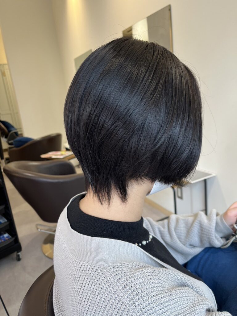 ハンサムショート横は少し長めに残して後ろはスッキリとくびれが出る感じにしました