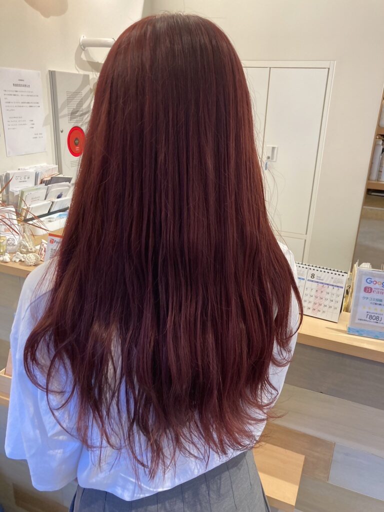 いやーロングの赤系カラーは可愛いくもありカッコ良くもなれますね 夏らしい感じもとても良い!