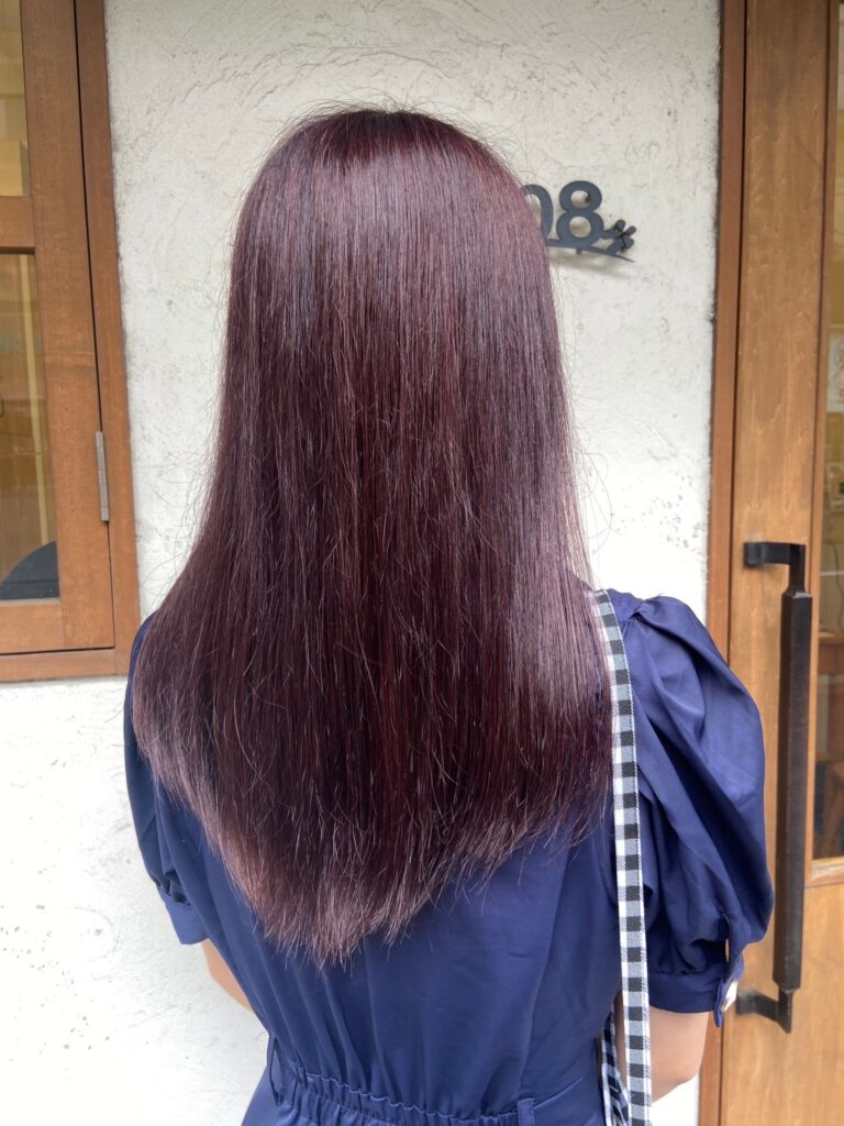 こんにちは!808naluの吉本です! こちらはブリーチ無しで出来ちゃうラベンダーピンク! 可愛い髪色にしたいけど、ブリーチはしたくない!そんな方にイチオシなお色です! 室内では落ち着いた暗髪に見えますが、太陽光の光で発色してとっても可愛いですよ〜!◎